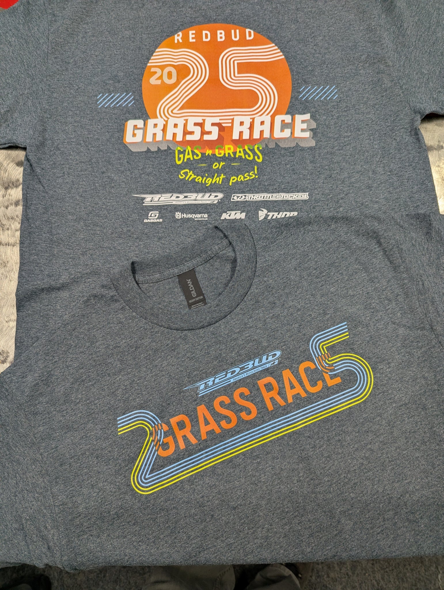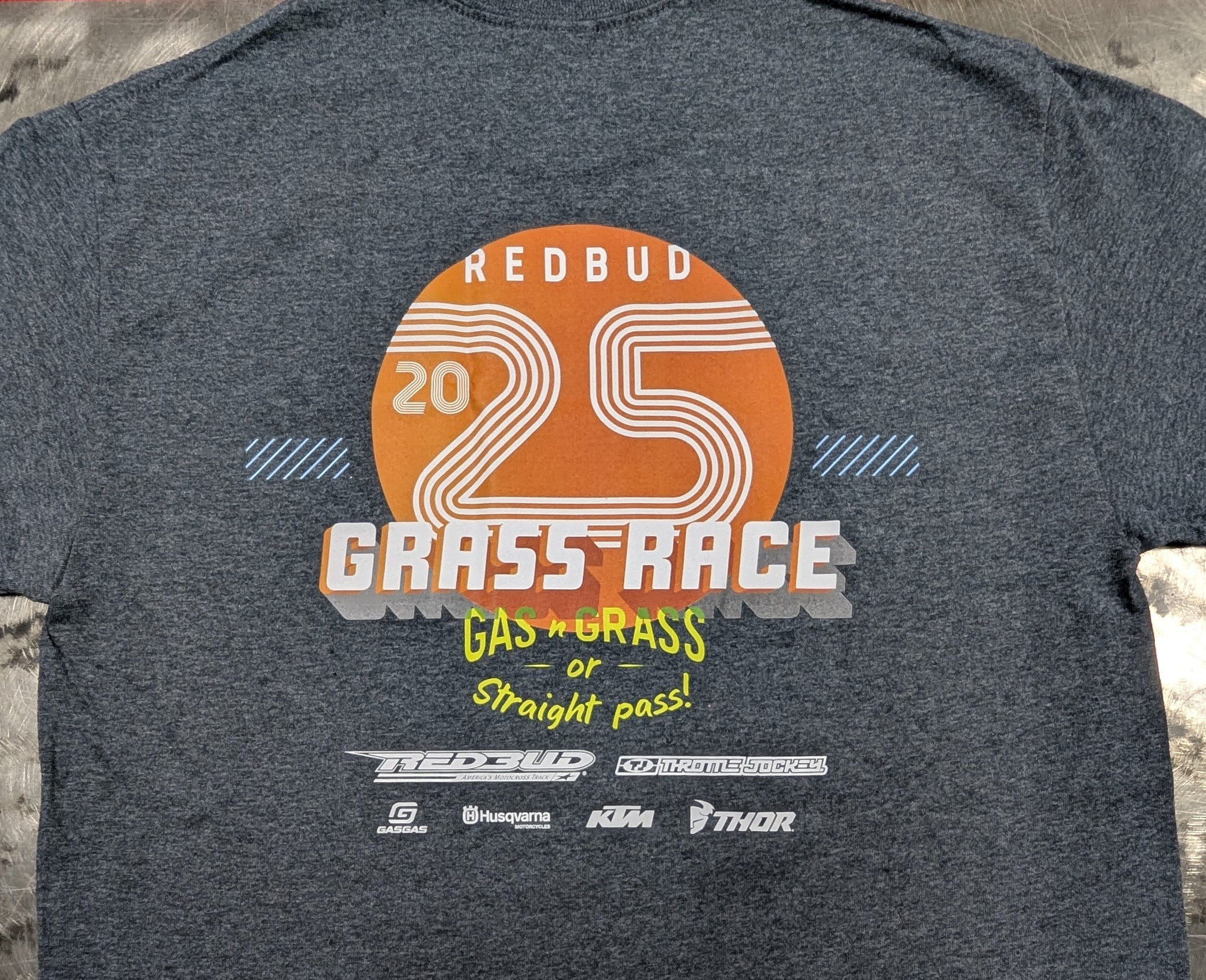 In the 36 years of the epic and unique RedBud Grass Race, only twice, an event t-Shirt has been produced. Instant sell out at the event and now reissued due to popular demand! Unique in color and graphics front and back sides, as the race itself...on soft unisex Gildan Heavy Cotton.